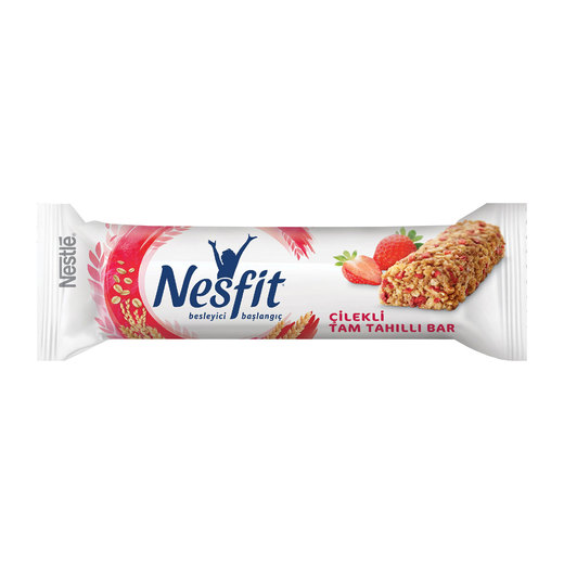 Nestle Nesfit Tam Tahıllı Çilekli Bar, tahıl içeriği yüksek ara öğünlerde tercih edilebilecek düşük kalorili bir seçenektir.