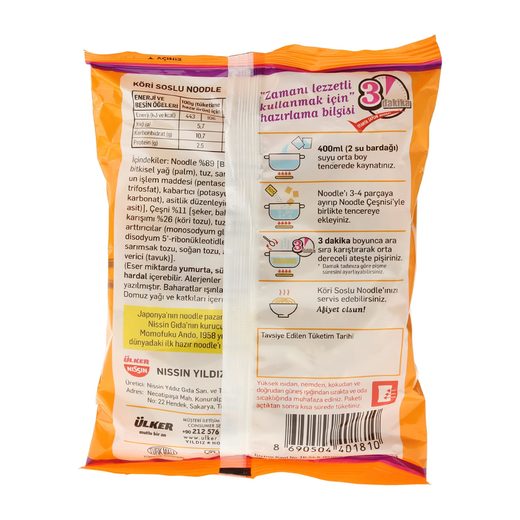 Ülker nissin köri soslu noodle,sıcak su ile sadece 3 dakika içerisinde servise hazır hale geliyor.
