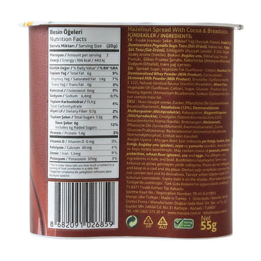 Nusspo Kakaolu Fındık Kreması, damağınızda bıraktığı eşsiz fındık aromasıyla sofranızın vazgeçilmezi olacak.