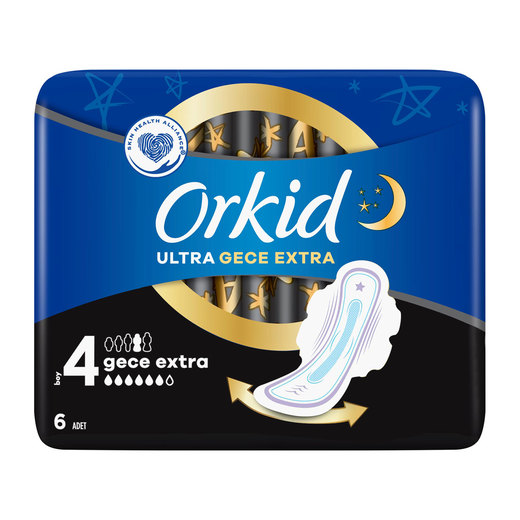 Orkid Ultra extra,üst yüzeyinde bulunan iri gözenekler ve mavi koruma bölgeleri sayesinde sıvıyı hızla emer ve içinde hapsederek cildinizin kuru ve temiz kalmasını sağlar.Cildinize yapışmayan üst yüzeyi ile gün boyu rahat olmanıza yardımcı olur.Dermatolojik olarak test edilmiştir.