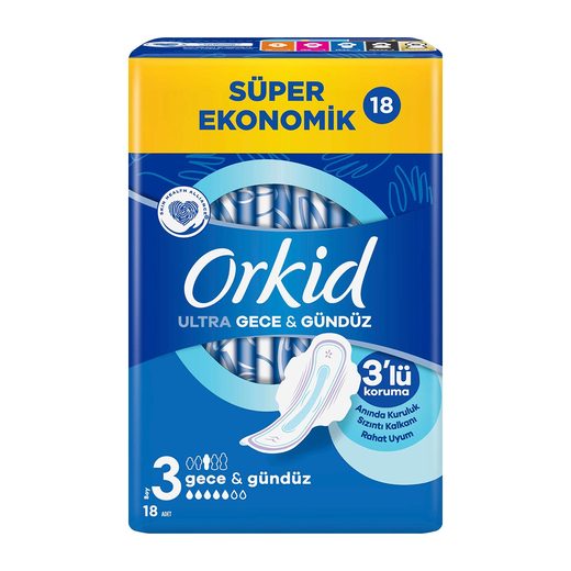 Orkid Ultra , üst yüzeyinde bulunan iri gözenekler ve mavi koruma bölgeleri sayesinde sıvıyı hızla emer ve içinde hızla emer ve içinde hapsederek cildinizin kuru ve temiz kalmasını sağlar. Cildinize yapışmayan üst yüzeyi ile gün boyu rahat olmanıza yardımcı olur.Dermatolojik olarak test edilmiştir.