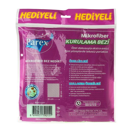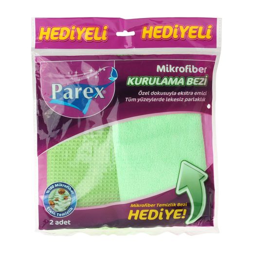Parex mikrofiber kurulama bezi,geliştirilmiş özel mikrofiber dokusu sayesinde eşsiz su emme gücüne sahiptir. Bulaşıkları anında kurular ve parlatır.Parmak izi ve su lekelerini kolayca temizler.Hassas yüzeylerde bile çizmeden temizlik sağlar.Ardında hav, iz ve leke bırakmaz.Hızlı kuruma özelliğine sahiptir.