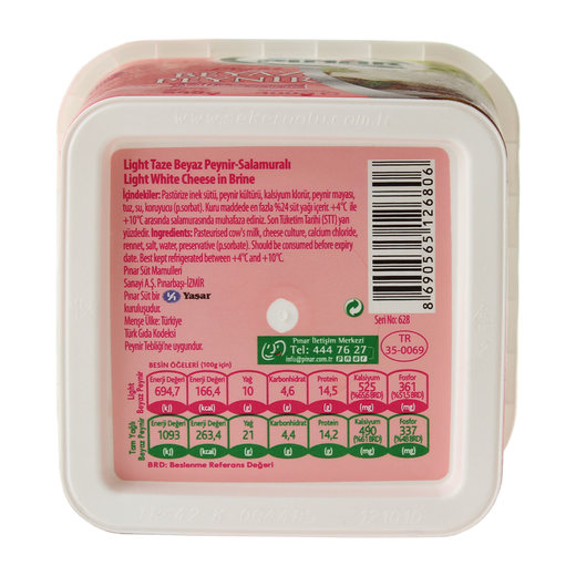 Pınar light beyaz peynir,tam yağlı beyaz peynirlere göre daha az yağ ve daha çok kalsiyum içerir. Pınar light beyaz peynir,özel üretim tekniğiyle el değmeden üretilmiş olup, özel lezzette bir peynirdir.