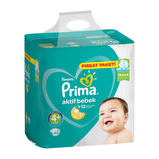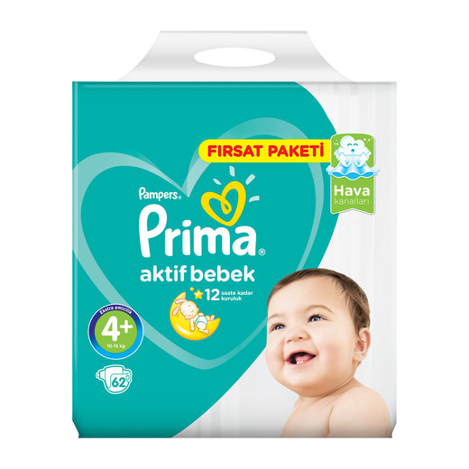 PRIMA Prima Aktif Bebek Bezi Fırsat Paketi 62'li 4+Beden