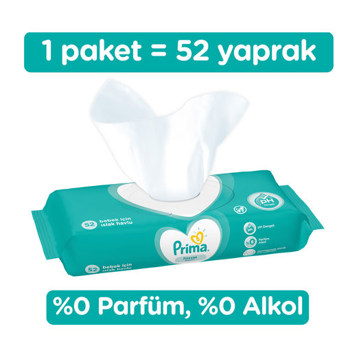 PRIMA Prima Islak Havlu Mendil Hassas Ciltler İçin 52 Yaprak Tekli Paket