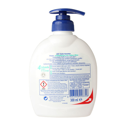Protex antibakteriyel sıvı sabun ultra bakterilerin %99,9'unu yok eder ve uzun süreli koruma için bakteri birikimini azaltır.İçeriği nemlendiricilerle zenginleştirilmiştir.Dermatolojik olarak test edilmiştir.