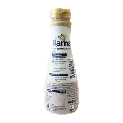 Türkiye’de ve dünyada profesyonel şeflerin uzun yıllardır üstün performansından dolayı tercih ettiği Rama Krema, şimdi 250 ml’lik ev tipi özel ambalajında kendi mutfağının şefi olmak isteyen tüketicilerin beğenisine sunuluyor.Kolay açılan, kolay dökülen, açılır-kapanır kapaklı şişesiyle üstün performansı tek bir üründe buluşturuyor.