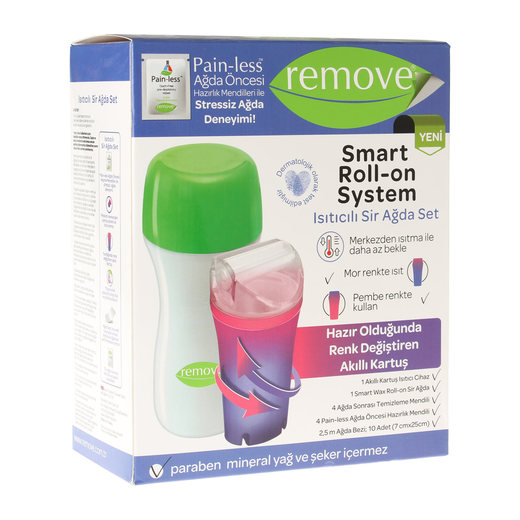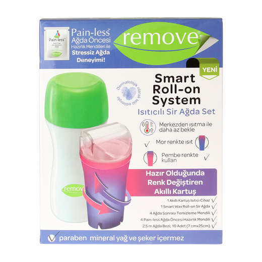 Smart Roll-on System, güvenli ve stressiz bir ağda deneyimi için ihtiyaç duyacağınız her şeyi barındıran çok özel bir set.İçinde "Akıllı kartuş ısıtıcısı", "Smart wax roll-on sir ağda", "Remove ağda öncesi hazırlık mendili", ve "Remove ağda bezi" yer alan bu set ile depilasyon sürecini konforlu bir şekilde tamamlayacaksınız.