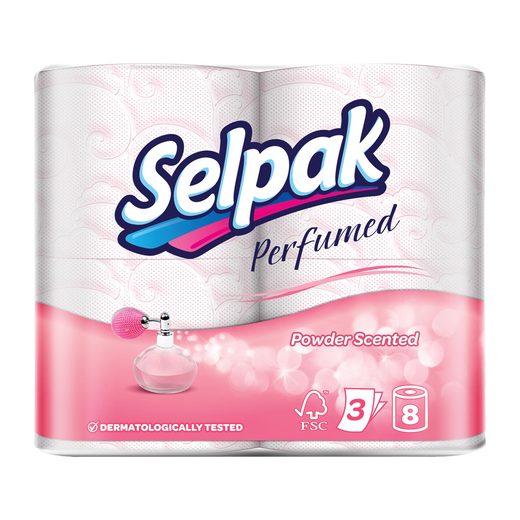 Selpak parfümlü serisi dekoratif rengi ve hoş kokusu ile banyonuzun vazgeçilmezi Selpak Parfümlü Tuvalet Kağıdı alerjen içermeyen formülü sayesinde, Türkiye’nin ilk parfümlü tuvalet kağıdı olarak her ciltte güvenle kullanım sağlıyor.