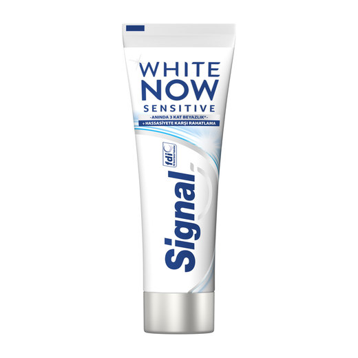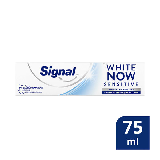 Özel bileşenleri sayesinde ilk kullanımdan itibaren dişlerde 3 kata kadar beyazlatma etkisi gösteren Signal White Now Sensitive kahve, nikotin, çay gibi maddelerin etkisiyle oluşan yüzey lekelerini giderir.
