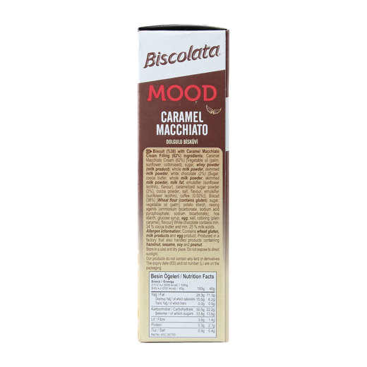Caramel Macchiato dolgusu ve bisküvisinin tadı ile kahve molalarında, ikramlarınızda ve atıştırmak için idealdir.