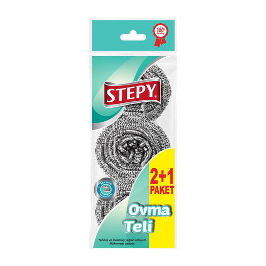 Stepy Bulaşık Ovma Teli en inatçı kirleri bile söker atar, yapışmış zor kirleri ve lekeli yüzeyleri çabucak ovar ve temizler. Bulaşık süngerlerinin yeterli olmadığı durumlar için kullanılabilir.