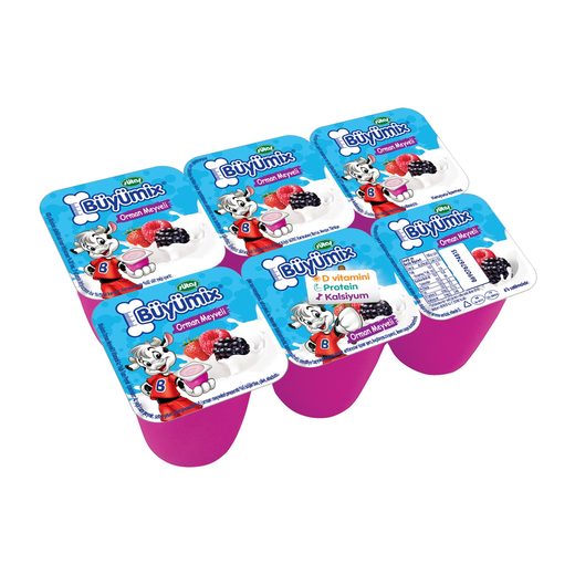 Orman meyveli Büyümix, böğürtlen, çilek ve ahudududan gelen vitaminlerin lezzetli birleşiminden oluşur.Bol sütten yapılan Büyümix çocukların sağlıklı büyümeleri için gerekli olan protein, kalsiyum, kalsiyumun vücut tarafından kullanılmasını sağlayan D vitaminini içerir.Büyümix hiçbir koruyucu içermez.