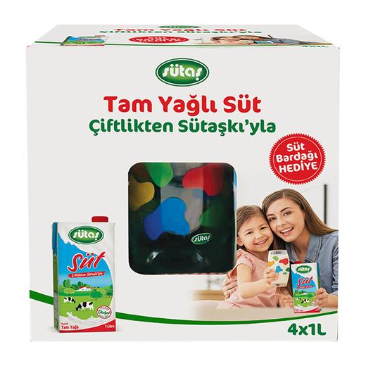 SÜTAŞ Sütaş Süt 4X1 lt %3.5 Tam Yağlı Bardak Hediyeli