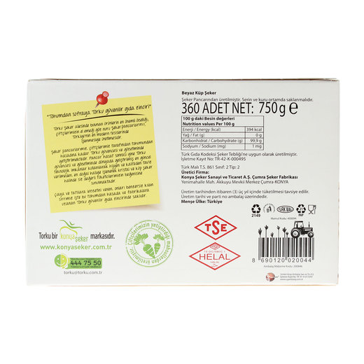 Torku küp şeker,%100 şeker pancarından doğal olarak üretilen bir şekerdir. Çay, kahve ve arzu edilen her türlü içecekte güvenle kullanabilirsiniz.