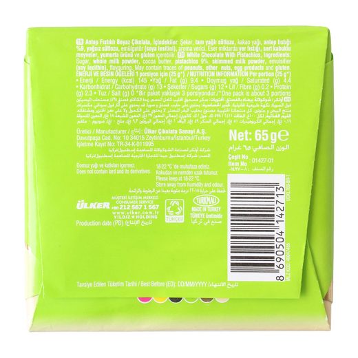 ÜLKER Ülker Çikolata Beyaz Antep Fıstıklı Kare 65 gr