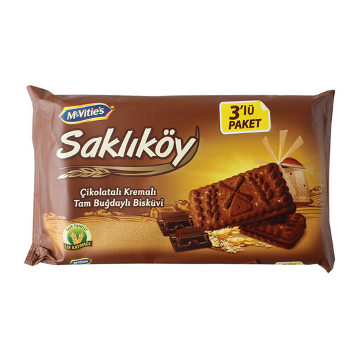 Saklıköy Çikolata Kremalı Bisküvi, Ülker'in çok sevilen lezzeti Saklıköy bisküvisini çikolata kreması ile buluşturuyor.
