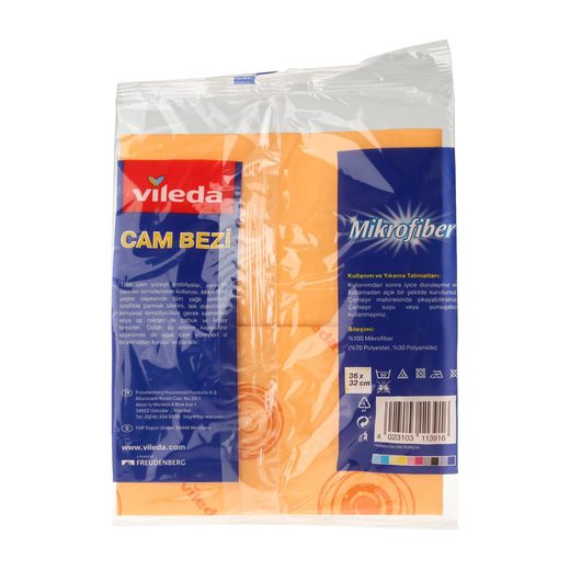 Vileda mikrofiberler insan saçından 100 kat daha incedir.Normal fiberler ise camdaki kiri temizlemek için kalındır. Makinada yıkanabilir (60°C). Lütfen ayrı olarak veya benzer renklilerle beraber yıkayınız. Yumuşatıcı kullanmayınız ve kurutma makinasına atmayınız.