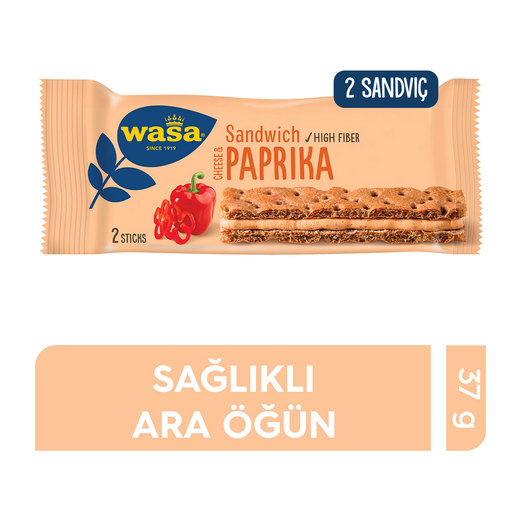 Wasa Kırmızı Biberli ve Krem Peynirli Sandviç, yüksek liflidir. İçi peynir ve kırmızı biberli, tam tahıllı çavdar kullanılarak fırınlanmış bir gevrek ekmek sandviçidir.İki parçadan oluşur ve dilediğiniz an, dilediğiniz yerde hareket hareket halindeyken yiyebileceğiniz muhteşem bir atıştırmalıktır.
