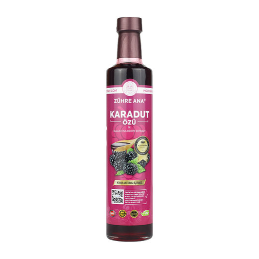 Zühre Ana'dan evinizin mutfağına, sofralarınıza özel olarak geliştirilmiş yeni formül, içerikli Karadut Özü! Karışım Oranı: 1-5 oranında su ekleyerek tüketebilirsiniz. (Damak Tadınıza Göre Ölçü arttırılıp azaltılabilir.)