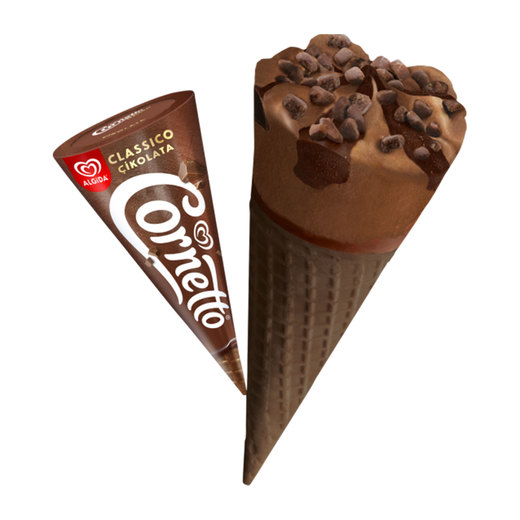 Cornetto Çikolata, kakao kaplı çıtır külahı ve içinde bulunan çikolatanın benzersiz tadıyla seni çok seveceğin bol çikolatalıbir deneyime çağırıyor.