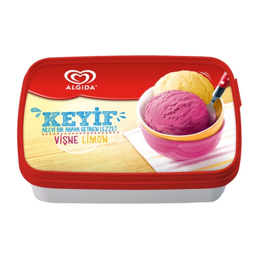 Kalabalık aile sofralarının vazgeçilmezi Algida Keyif, vişne ve limonun eşsiz lezzetini bir araya getiriyor. Algida Keyif Vişne Limon avantajlı 750 ml ambalajı ile yazın serinletici keyfini aile boyu yaşamanıza olanak sağlıyor.