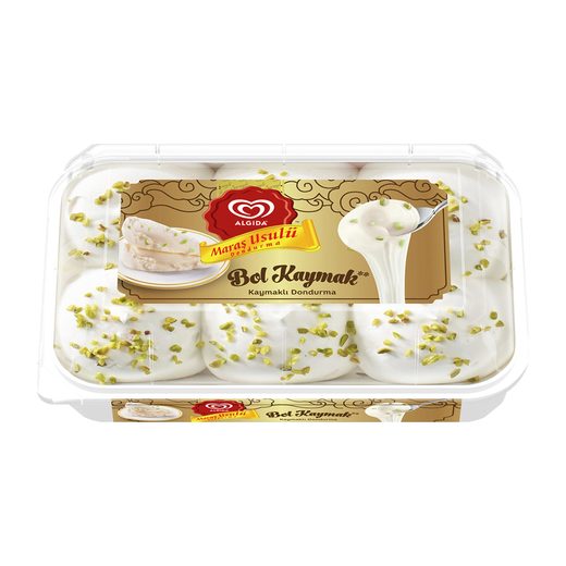Tam sevdiklerinize ve size layık bir lezzet: Algida Maraş Usulü Bol Kaymaklı Dondurma. Bol Kaymak’tan aldığınız her bir kaşıkta yoğun süt lezzetiyle buluşacaksınız. Üzerinde yer alan antep fıstıklarının eşsiz tadıyla Algida Maraş Usulü Kaymaklı Dondurma’nın kaymaktan ve sütten gelen lezzeti arttı.