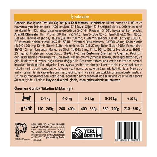 Bandelo kedi mamaları, kedilerin günlük enerji ve besin ihtiyaçlarını karşılamaya yardımcı olacak şekilde formüle edilmiştir.