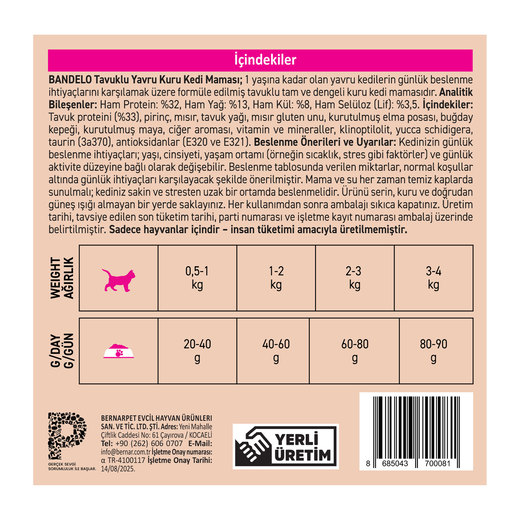 BANDELO Bandelo Tavuklu Yavru Kedi Maması 750 gr