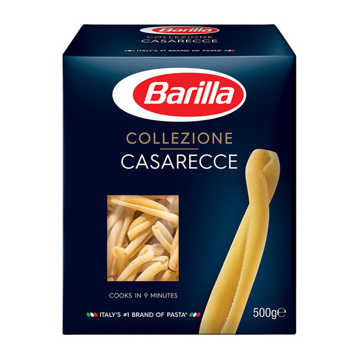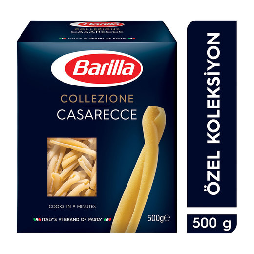 Barilla Collezione serisi, makarnayı gurme bir tabağa dönüştürür. Bronz kalıpla üretilen Barilla Collezione serisinden Casarecce, mükemmel sos tutuş özelliğine sahiptir. Barilla Casarecce 9 dakikada hazır olur.