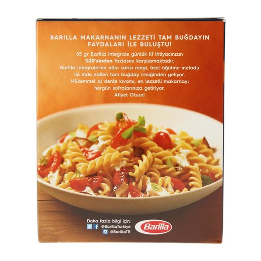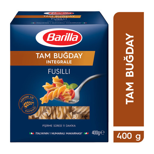 Barilla Tam Buğday Fusilli düşük glisemik indekse sahip ve iki kat lifli içeriğiyle hem sağlıklı hem de çok lezzetli. İtalya'nın bir numaralı makarnası Barilla'nın kalitesini sofranıza getiriyor. Barilla Tam Buğday Fusilli 11 dakikada hazır.