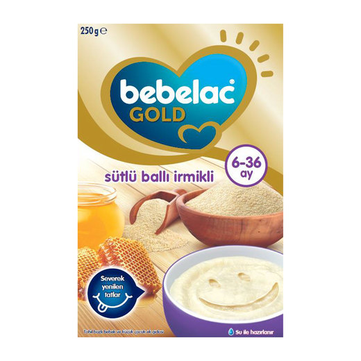 Bebelac Gold Sütlü Ballı İrmikli 6. aydan itibaren kullanımı uygun ek gıdadır.Bebeğinizin beslenmesine yardımcı olacak bir seçenektir.Bebek sütü içerir.Bebeklere özel bal ve irmikli karışımı vardır.