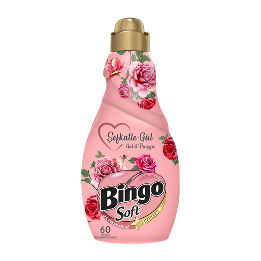 Bingo Soft Konsantre Yumuşatıcı Gül Serisi ailesinden Gül, Frezya olmak üzere iki ana koku notası içeren konsantre yumuşatıcı, çamaşırlarınıza mis gibi gül, frezya kokmasını sağlar.