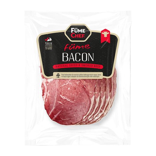 Dilimli füme bacon (kaburga), dana kaburgasının özel baharatlarla marine edilip tütsülenmesiyle hazırlanan lezzetli bir şarküteri ürünüdür.