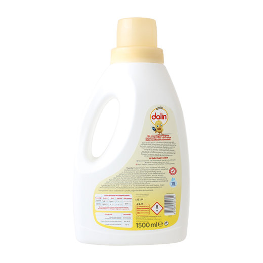 Dalin bebek bakım uzmanları, bitkisel kaynaklı yağlardan elde edilen sabun bazı kullanarak, doğal formüllü çamaşır deterjanı geliştirdi. Parfüm ve boya içermeyen, dermatolojik olarak test edilmiş içeriği ile ilk günden itibaren bebeğinizin çamaşırlarında güvenle kullanabilirsiniz.