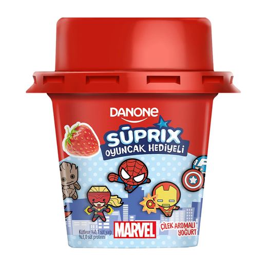 Yeni Danone Süprix, Altı çilek tadında yoğurt, üstü sürpriz oyuncak. Eğlenceli oyuncaklı yoğurt.