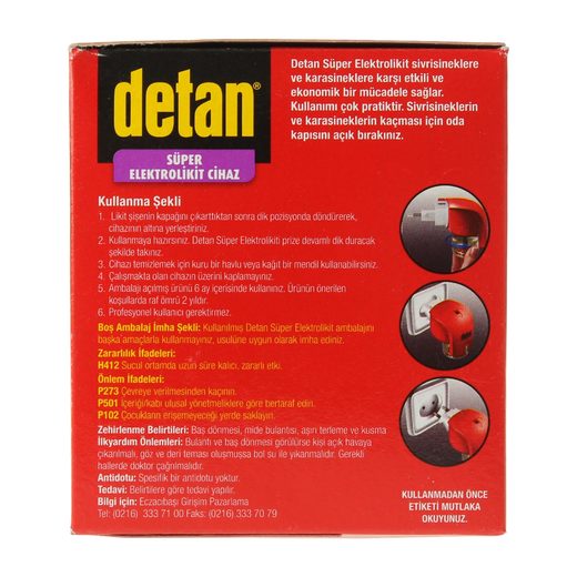 Detan 60 Gece Süper Elektrolikit, karasinek ve sivrisineklere karşı tam 60 gece koruma sağlıyor! Prize taktığınızda standart elektrolikitlere göre 5 kat daha hızlı etki eder.
