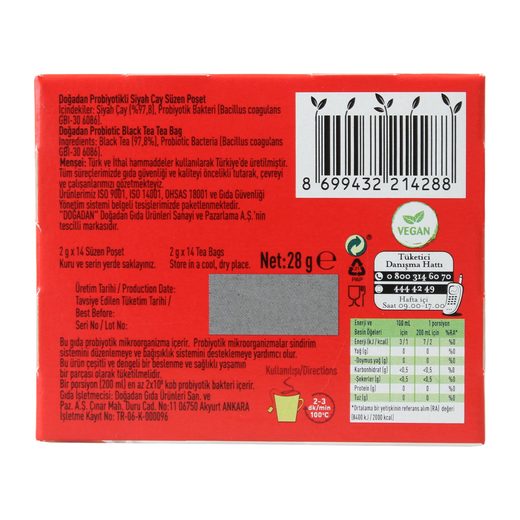 DOĞADAN Doğadan Probiyotikli Siyah Çay 28 gr