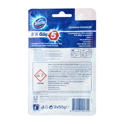 DOMESTOS Domestos Wc Blok Okyanus Ferahlığı 5'li Güç 2x50 gr