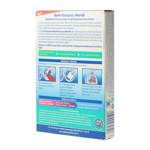 Renk ayrımına son. Renkli ve beyaz giysileriniz bir arada çok mutlu.Dr. Beckmann renk koruyucu mendil, renklilerle beyazların aynı anda yıkanmasını sağlayan mükemmel bir buluştur.