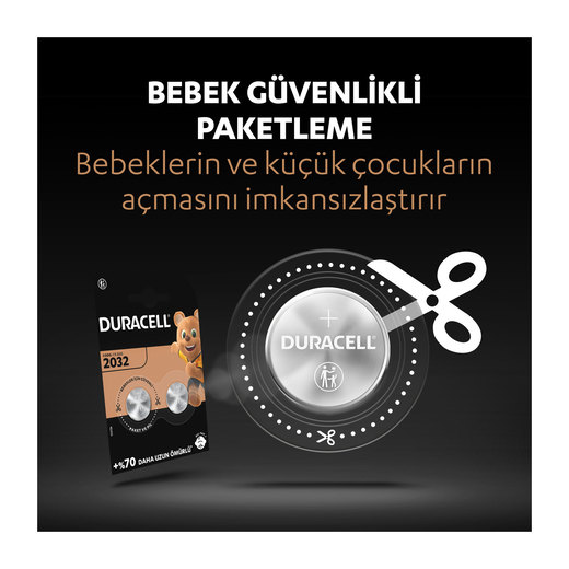 Duracell Özel 2032 lityum düğme piller yüksek saflıkta lityum kullanılarak yapılır ve özel cihazlarınıza %70 daha uzun ömür sağlar