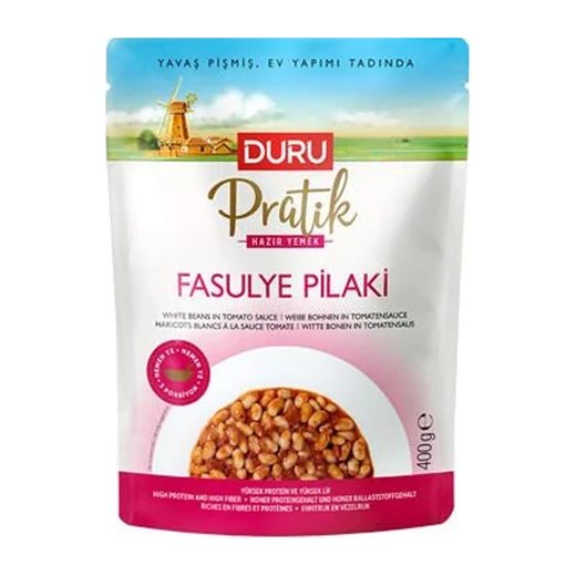 Zamanı değerli olanlara ve lezzetten taviz vermeyenlere Duru Pratik Fasulye Pilaki istediği her an ve her yerde eşlik ediyor. Duru Pratik Hazır Yemek paketlerini açın ve öğünlerinize lezzet katın.