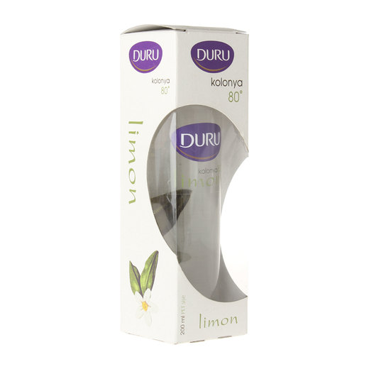 Duru limon kolonyası,etil alkol, su ve esans karışımından oluşan ürün, antibakteriyel etkisi ile hijyen amacıyla kullanılmasının yanı sıra güzel kokusu ile de tercih ediliyor.Kalıcı kokusuyla uzun süre etkisini sürdürür.