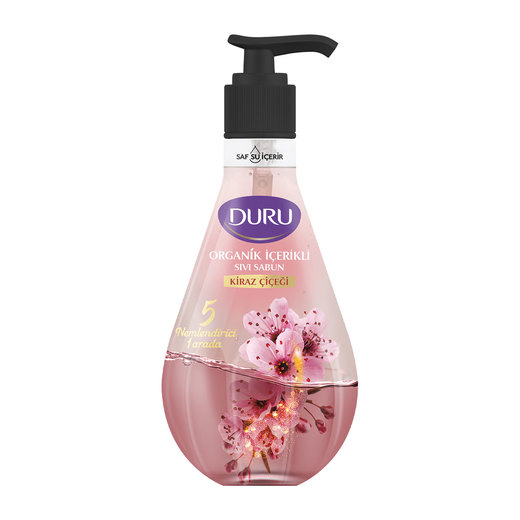 Duru Sıvı Sabun bitkisel nemlendiriciler ve saf su ile buluştu.Yeni Duru Organik İçerikli Kiraz Çiçeği Sıvı Sabun ellerinizi nazikçe temizlerken içeriğindeki 5 farklı nemlendirici ile ellerinize yumuşak bir dokunuş bırakır.