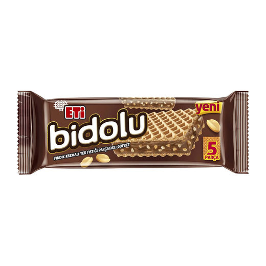 ki gofret yaprağı arasında dolu dolu fındık kreması ve gerçek fıstık parçacıkları. Eti Bidolu, gofret severlere yepyeni bir deneyim yaşatıyor. ki gofret yaprağı arasında Bidolu kremasıyla gofrette yenilik ve haz arayanlara Eti bidolu.