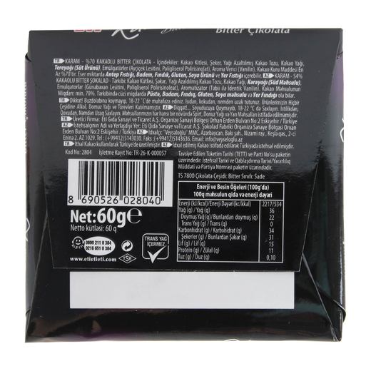 ETI Eti Karam %70 Kakaolu Bitter Çikolata Kare 60 gr