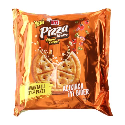 Dünyanın en küçük pizzası sloganıyla tanıtılan Eti Pizza Kraker'ler kırmızı biber, haşhaş tohumu, soğan gibi çeşitli baharat ve sebzelerin karışımıyla oluşturulmuştur.