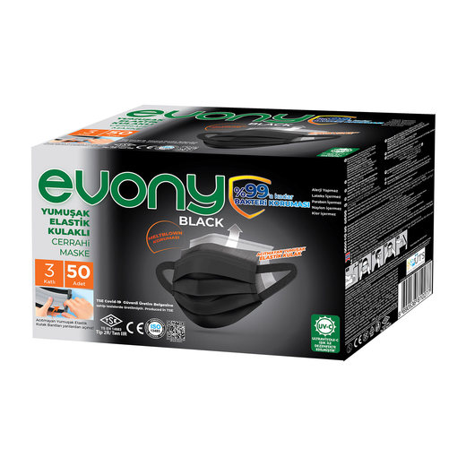 EVONY Evony Cerrahi Maske Siyah 50'li