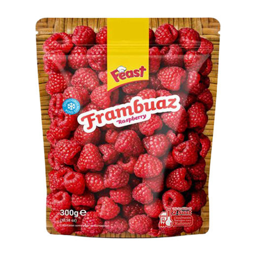 Feast Frambuaz, doğal frambuaz meyvelerinin dondurarak paketlenmesiyle elde edilmiş bir üründür.