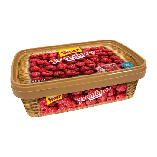 Feast Frambuaz, doğal frambuaz meyvelerinin dondurarak paketlenmesiyle elde edilmiş bir üründür. Feast Frambuaz ile özellikle süsleme ve lezzet verme amacıyla tatlı menülerini çeşnilendirebilirsiniz.